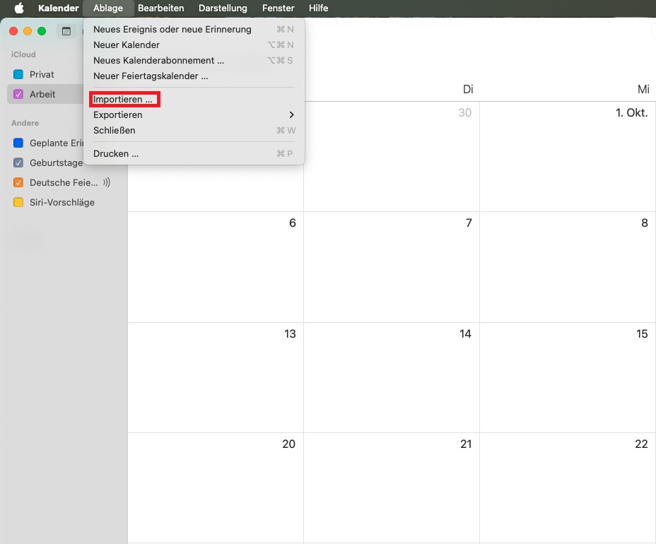 Eine ICS-Datei mit Apple Kalender öffnen