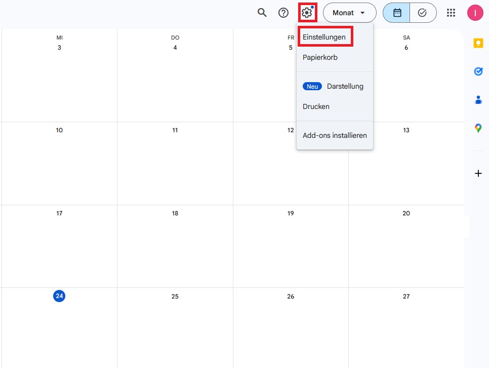 - Öffnen Sie Google Kalender.