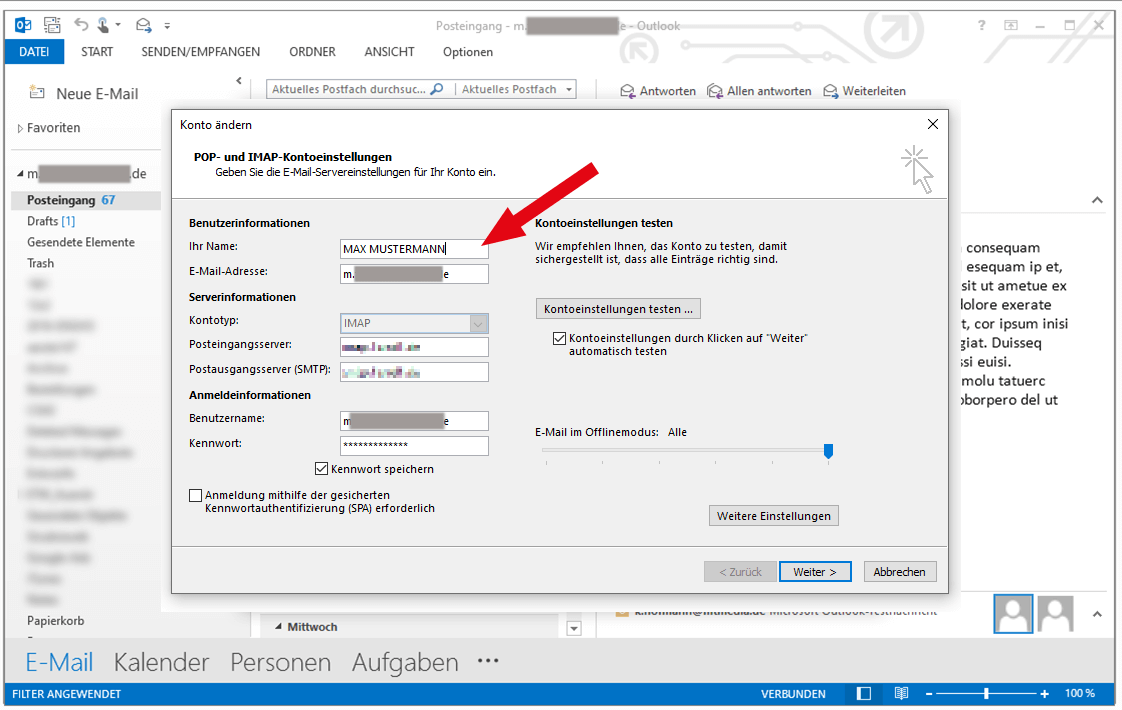 Outlook-Absendername in den Kontoeinstellungen ändern