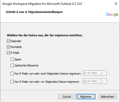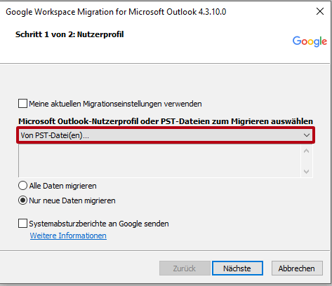 PST-Gmail-Migration mit der Google Workspace Migration für Outlook