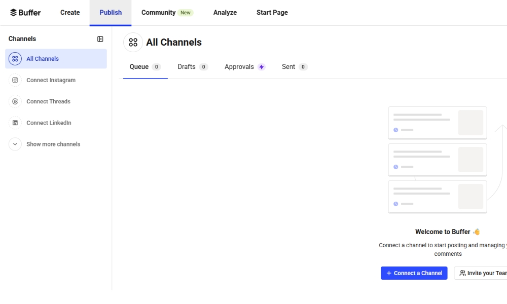 | Buffer | Einzelpersonen und kleine Teams | Sehr einfache Bedienung, KI-Assistent, Queue-System, Basis-Analytics | Gratisversion, kostenpflichtig ab 6 $ pro Kanal |