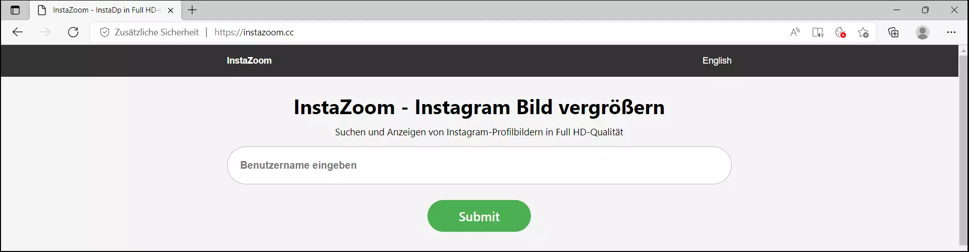 Bei InstaZoom handelt es sich um die Website instazoom.cc, die sich in jedem Desktop-Browser bzw. in jeder Mobile-Browser-App nutzen lässt. Sie rufen die Seite im Browser auf und geben einfach den Instagram-Usernamen oder die zugehörige Instagram-URL in die Suchzeile ein. Die Website bezieht die gesuchten, öffentlichen Profilbilder per API und Instagram-ID des Accounts direkt von den Instagram-Servern und gibt sie in Originalgröße wieder. Sie können die Bilder auf Wunsch herunterladen. Im Gegensatz zu Instadp, einer ähnlichen Browser-Anwendungen für Instagram-Bildersuche, können Sie hier nur Profilbilder suchen und speichern, nicht jedoch Stories, Reels, Videos oder Posts.