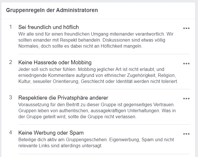 5. Bleiben Sie bei persönlichen Angriffen souverän und setzen Sie klare Grenzen: Trolle und Unruhestifter finden sich in fast jeder Online-Community. Wenn Sie ins Visier eines solchen Zeitgenossen geraten sind, versuchen Sie souverän zu reagieren und sich nicht auf ausschweifendes und unsachliches Kommentar-Pingpong einzulassen. Setzen Sie Grenzen und machen Sie Ihre Meinung deutlich. Fruchtlose Beitragskämpfe vor den Augen der gesamten Community schaden Ihrem Ruf jedoch eher und haben keinen Mehrwert für die stillen Mitleser. Bei wiederholten und/oder grenzüberschreitenden Äußerungen anderer Mitglieder melden Sie den Streitsuchenden in einer persönlichen Nachricht an die Moderatoren der Gruppe, damit diese über einen Ausschluss entscheiden können.