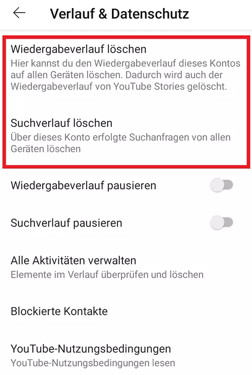 Schritt 4: YouTube-Suchverlauf und Wiedergabeverlauf löschen