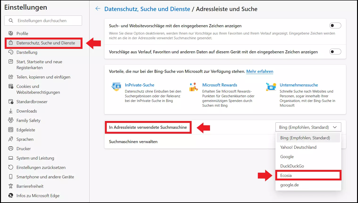 Ecosia als Standardsuchmaschine einrichten: Schritt für Schritt