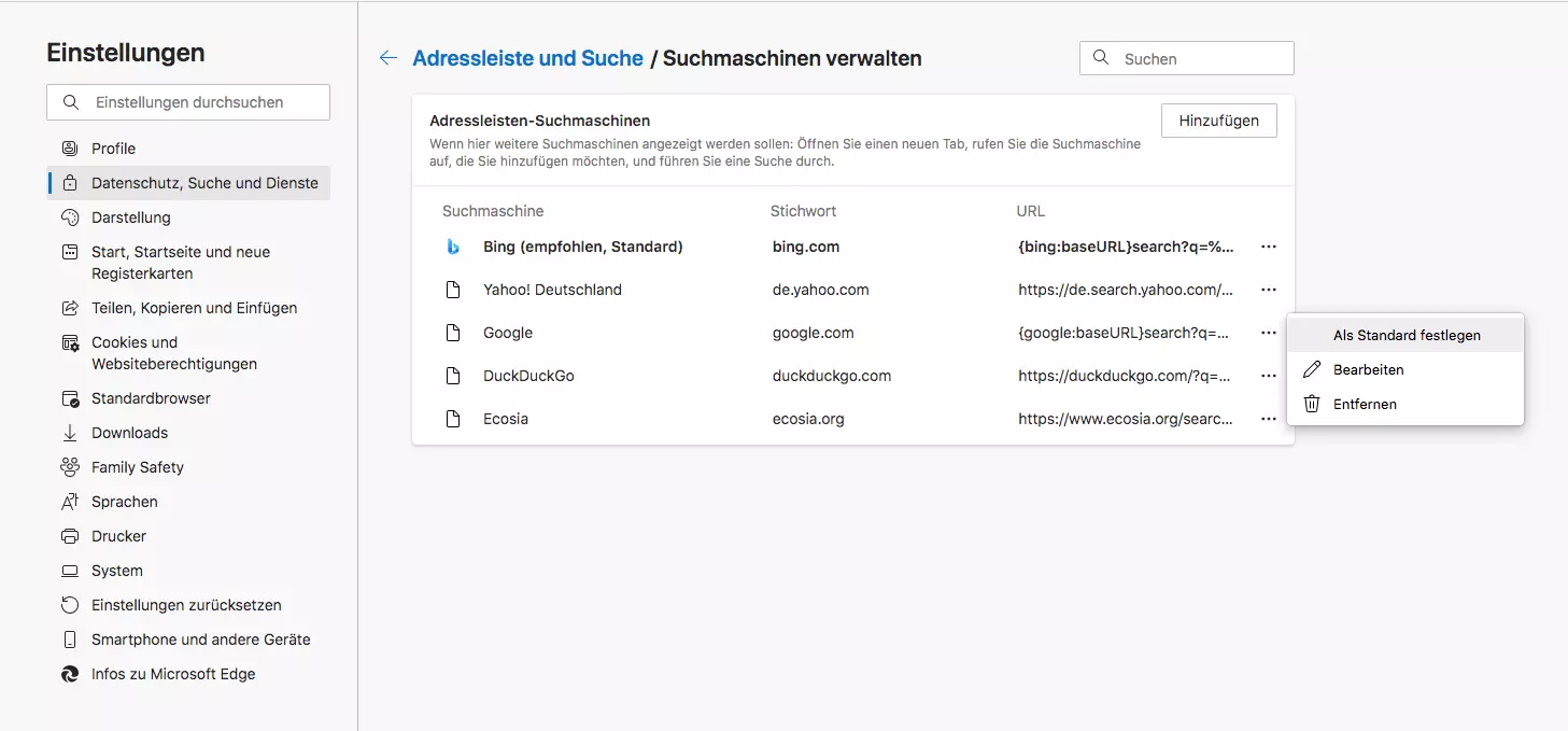 Suchmaschine ändern mit Chrome, Firefox und Edge
