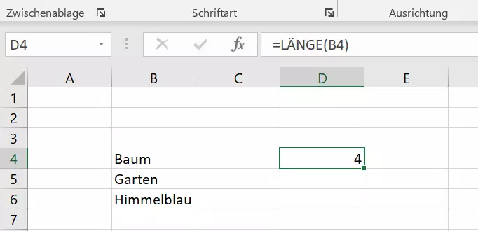 Auf diesen Datensatz wenden Sie nun zunächst die LÄNGE-Funktion an: