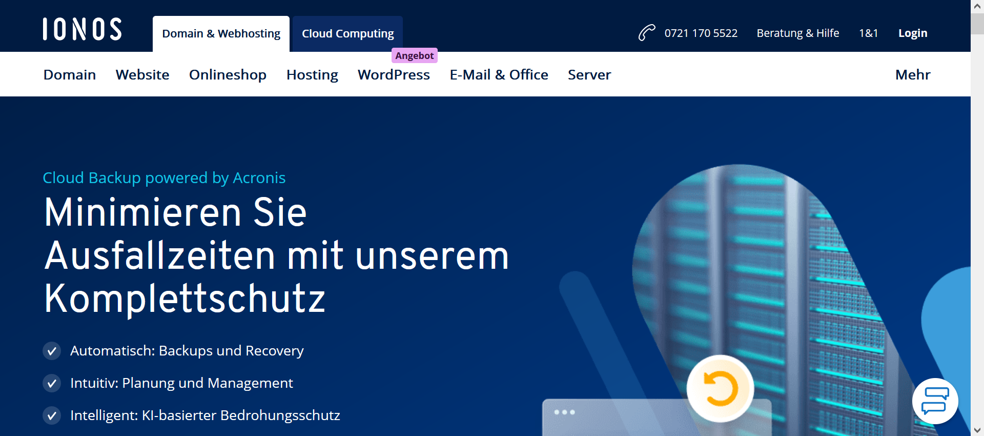 Ob PC oder Server, Smartphone, Tablet und Laptop: Mit dem IONOS Cloud Backup sichern Sie Ihre Daten bei einem der besten Online-Backup-Anbieter. Dabei entscheiden Sie selbst, wann und wie oft die Backups angelegt und wie lange diese auf den Servern von IONOS gespeichert werden sollen.