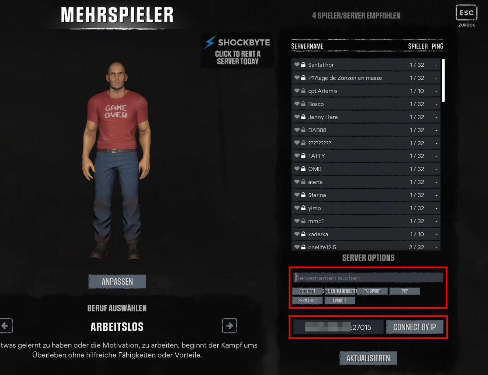 Sie können sich nun jederzeit mit Ihrem dedizierten Server verbinden. Starten Sie das Zombie-Game hierfür wie gewohnt über Steam und führen anschließend folgende Schritte aus:
