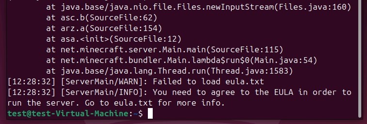 sudo nano eula.txtbashSie finden einen Link zum Vertrag vor, den Sie sich kopieren und im Browser öffnen. Nachdem Sie sich die Bedingungen durchgelesen haben, ändern Sie den Eintrag eula=false in eula=true. Speichern und schließen Sie die Textdatei.