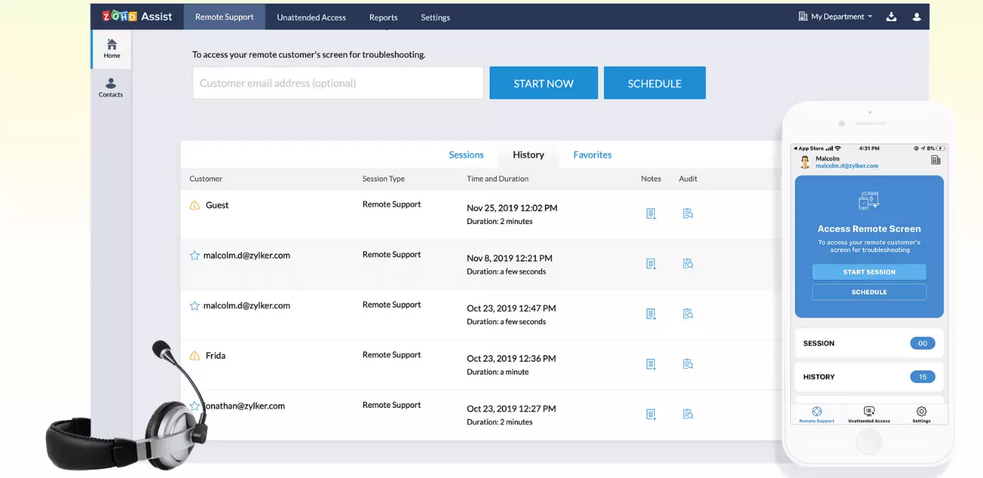 Zoho bietet unterschiedliche Programme an, die die Arbeit im Büro vereinfachen sollen. Neben den großen Feldern CRM, Recruiting und Office-Anwendungen hat der Hersteller mit Zoho Assist auch ein Remote-Desktop-Tool im Angebot. Genau wie alle anderen Anwendungen von Zoho richtet sich auch diese Software an den Unternehmensalltag. Zoho Assist soll einerseits den internen IT-Support unterstützen, andererseits aber auch für externe Kunden interessant sein. Für letztere gibt es das Kunden-Widget. Dieses kann ein Unternehmen auf der eigenen Website einbinden und so Nutzern die Möglichkeit geben, die Fernwartung ohne vorherige Software-Installation zu initialisieren. Nutzer müssen nur eine Session-ID eintragen, die ihnen zuvor per E-Mail zugesandt wurde.