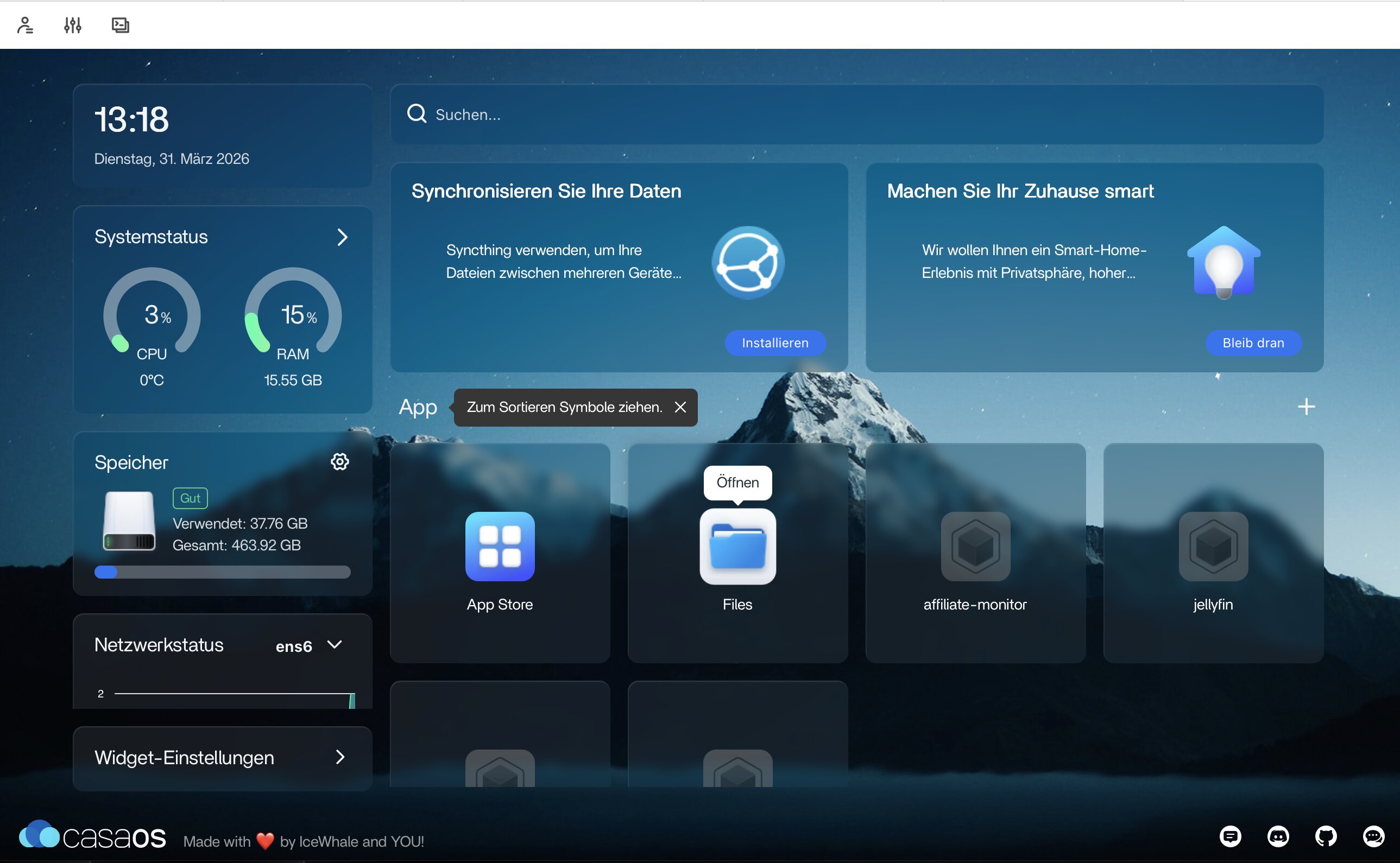 Bevor Sie mit der eigentlichen Installation von n8n beginnen können, benötigen Sie zunächst CasaOS als Verwaltungsoberfläche. CasaOS ist eine benutzerfreundliche Plattform, mit der Sie Anwendungen wie n8n bequem per Klick installieren und verwalten können, ohne sich intensiv mit Docker oder komplexen Serverbefehlen auseinandersetzen zu müssen.