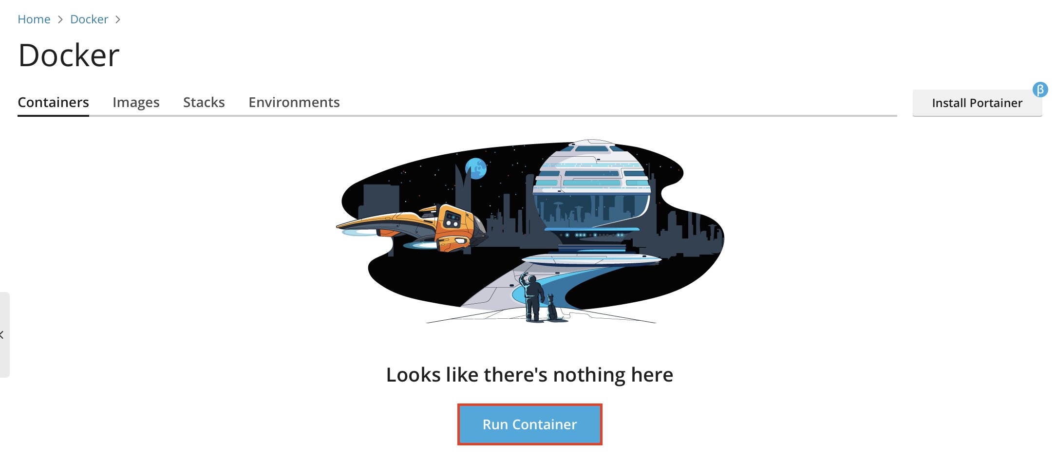 Nach der Installation erscheint in der linken Navigation ein eigener Docker-Bereich. Dort können Sie Images suchen, Docker-Container anlegen, Ports zuordnen und Umgebungsvariablen setzen.