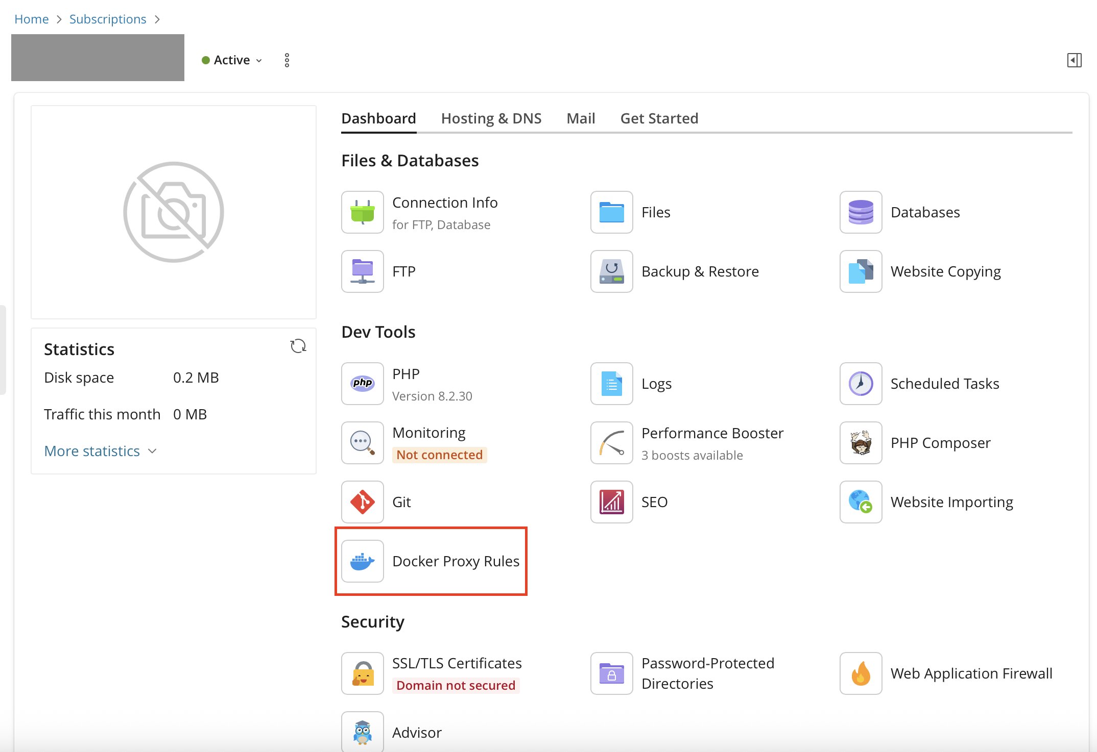 Öffnen Sie in Plesk den Bereich „Erweiterungen“ und installieren Sie dort die Docker-Erweiterung, falls sie noch nicht vorhanden ist.