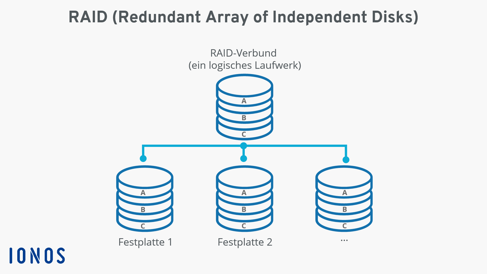 Ein RAID (Redundant Array of Independent Disks) ist ein Verbund aus mindestens zwei verschiedenen Speichermedien zu einem einzelnen großen logischen Laufwerk. Das zentrale Prinzip eines RAID-Systems ist die redundante Speicherung von Daten, die dafür sorgt, dass die Integrität und Funktionalität des Gesamtverbunds beim Ausfall einzelner Festplatten nicht gefährdet sind.