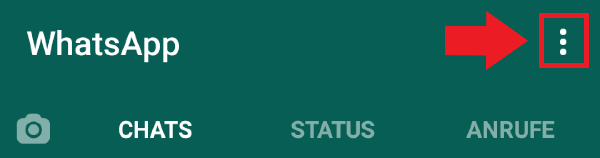 Schritt 1: Öffnen Sie WhatsApp auf dem Smartphone und gehen Sie oben rechts auf die drei Punkte für „Weitere Optionen“.