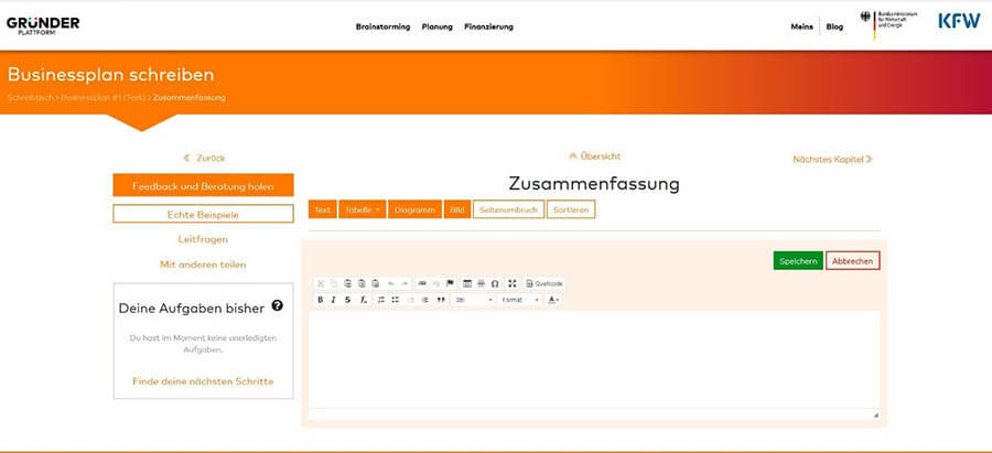 Interaktives Businessplan-Tool von BMWi und Kfw
