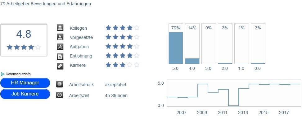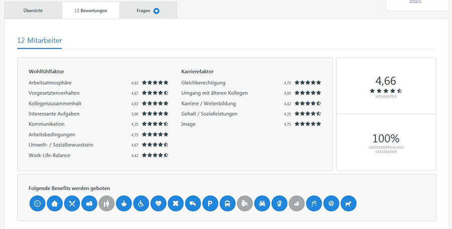 - Anzahl der Bewertungen: Je öfter ein Unternehmen bewertet wurde, desto größer ist die Aussagekraft der Beurteilungen und somit der Nutzen für den Bewerber. Kommentare lassen sich zudem besser einordnen: Beklagt sich nur ein einzelner über schlechte Klimatisierung der Arbeitsräume oder tritt das Problem vermehrt auf?