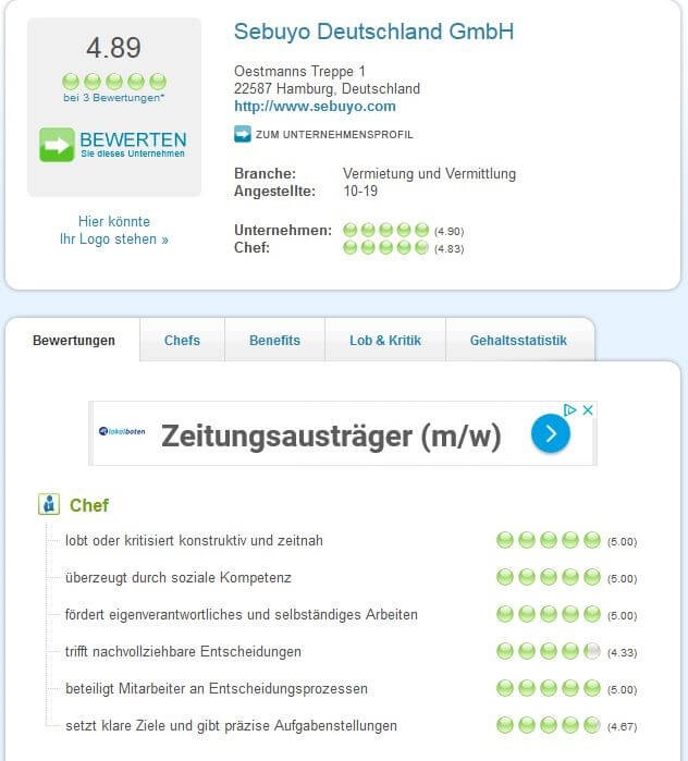 - Informationen über den Arbeitgeber: Sind Informationen über das Unternehmen – wie Branche, Produktpalette und Größe – vorhanden? Im Idealfall werden diese Angaben durch aktuelle Stellenangebote ergänzt.