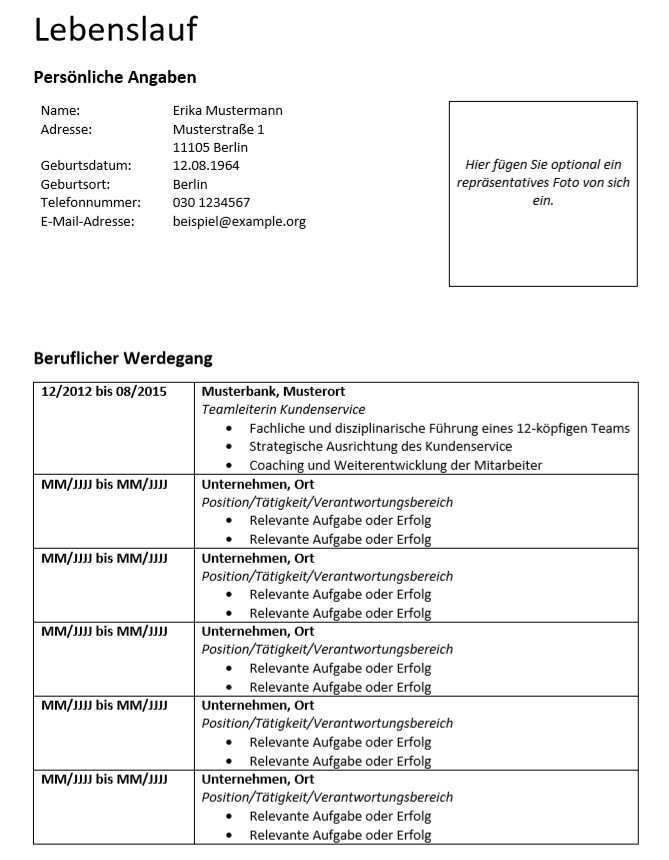 Lebenslauf-Muster: Vorlage im Word-Format