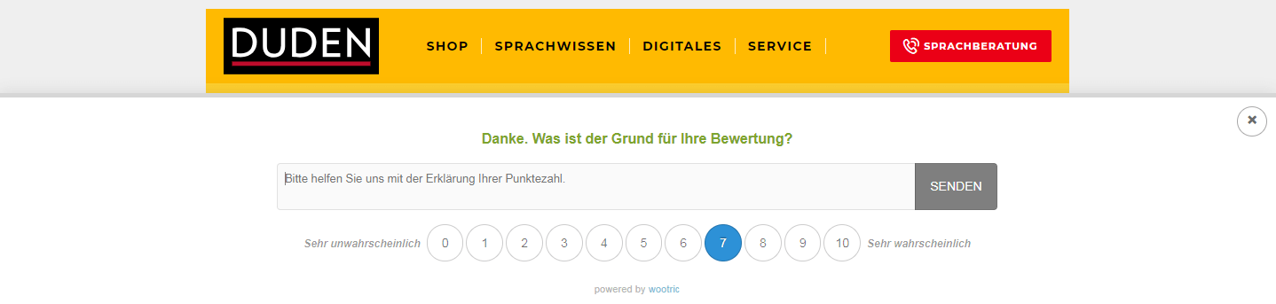 - 9–10: Kunden, die Ihre Bereitschaft zur Weiterempfehlung mit 9 oder 10 angeben, gelten als Promotoren.