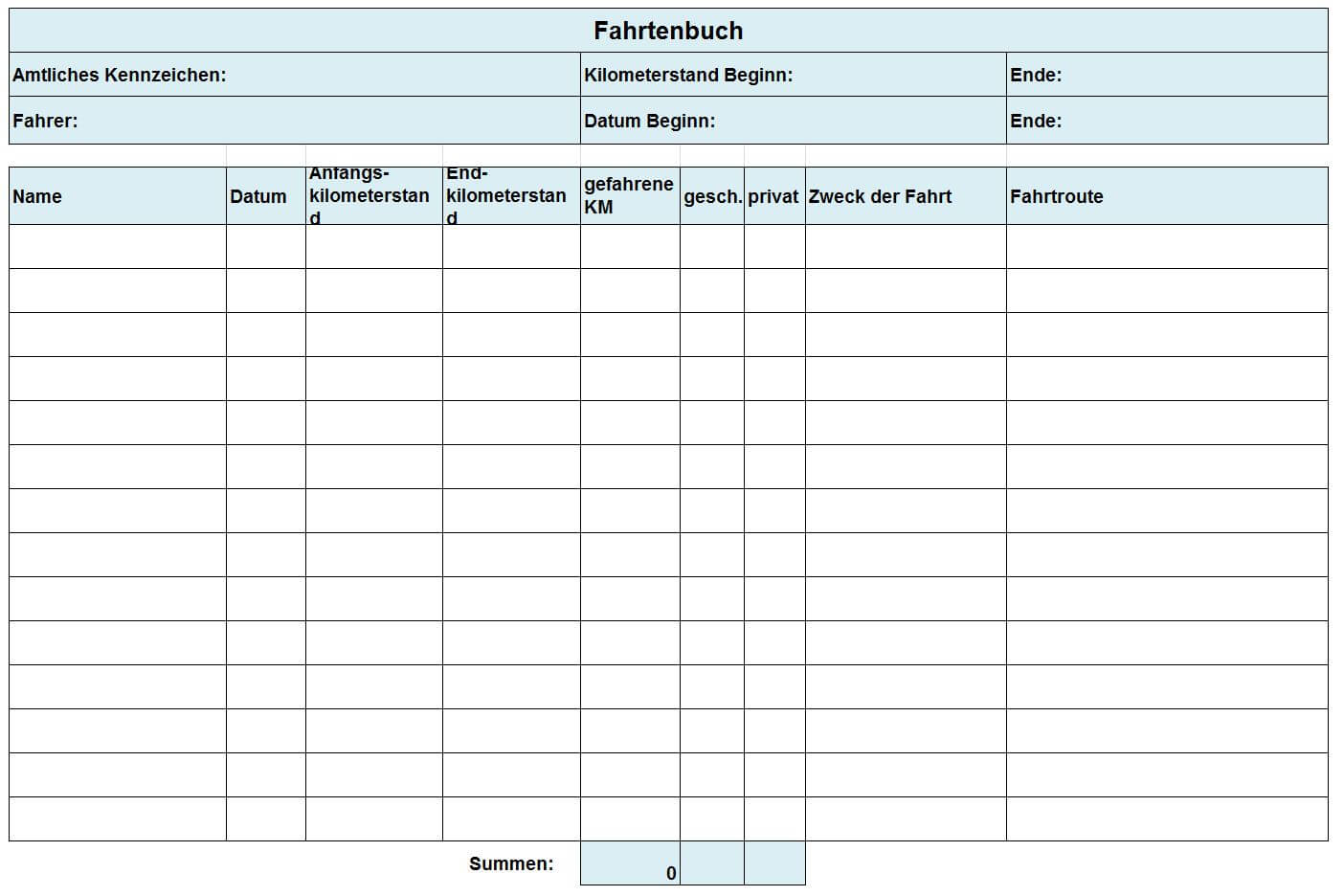 Die folgende Fahrtenbuch-Vorlage können Sie kostenlos als Excel-Datei herunterladen und sofort verwenden: