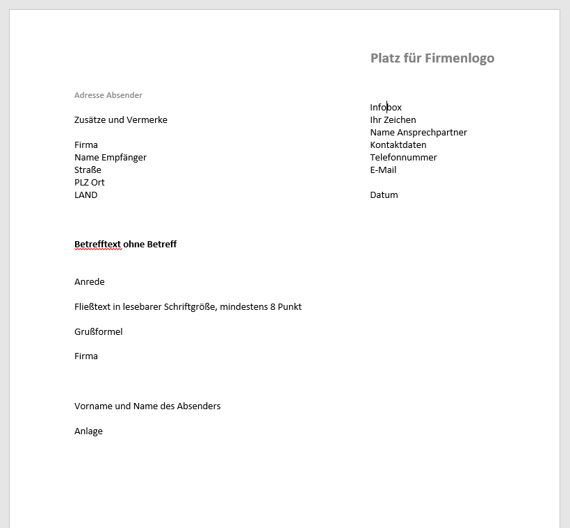 Geschäftskorrespondenz – Vorlage nach DIN 5008 in Word