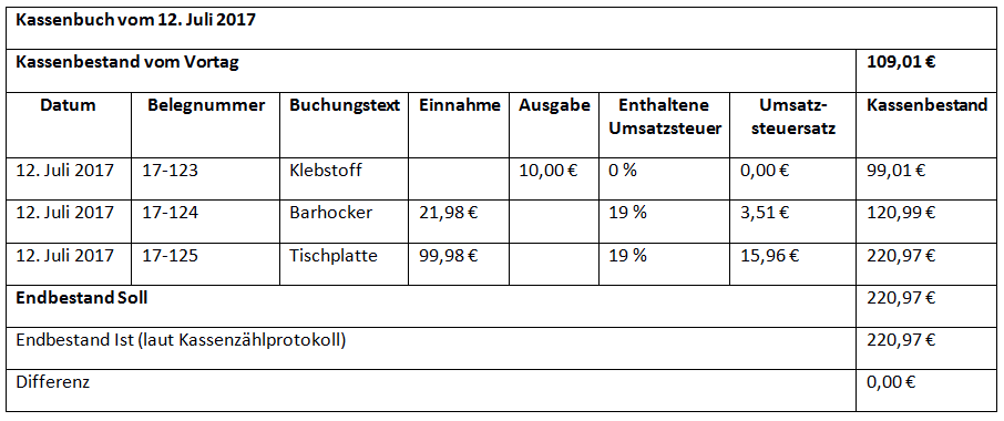 Beispiel für ein Kassenbuch