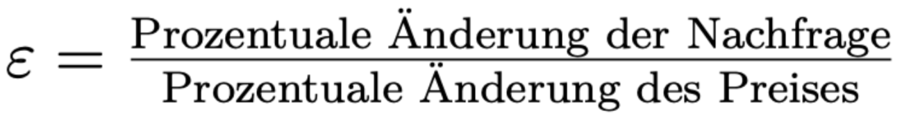 Um einen vergleichbaren Wert für verschiedene Güter und Dienstleistungen zu erhalten, wird die prozentuale Nachfrageänderung durch die prozentuale Preisänderung geteilt. Daraus ergibt sich für die Berechnung der Preiselastizität der Nachfrage folgende Formel: