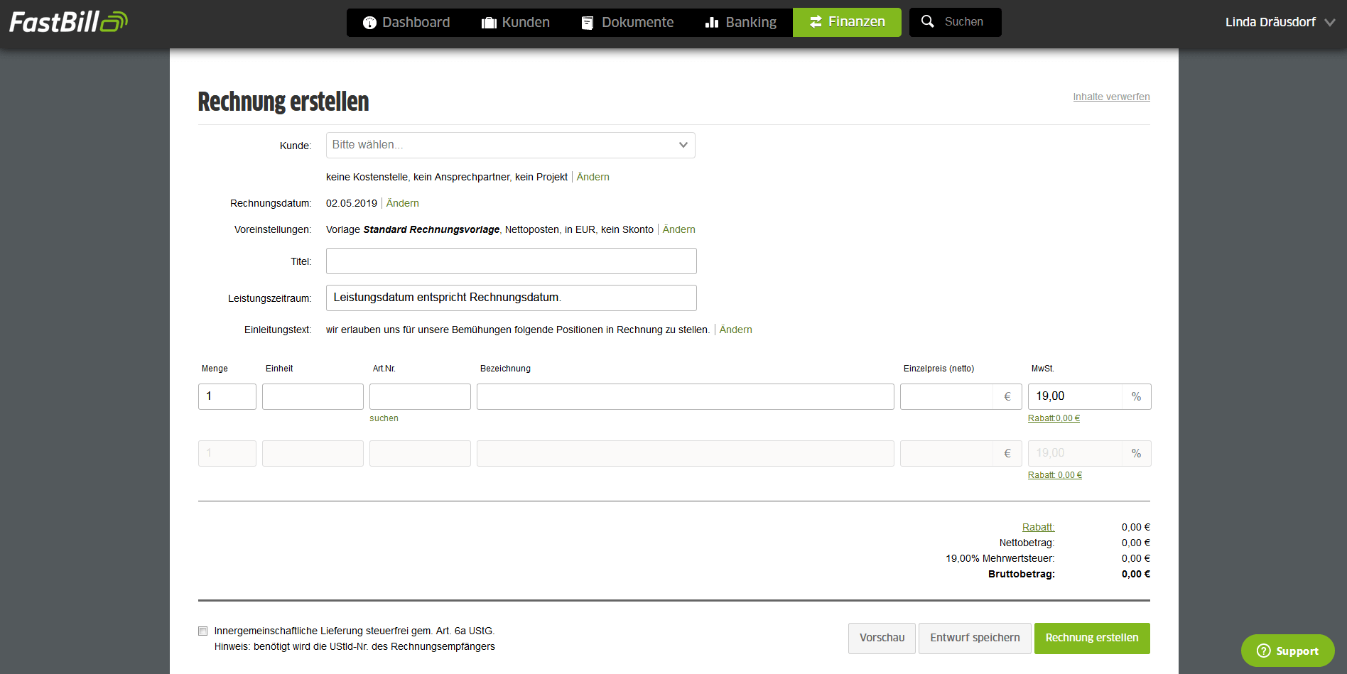 Mit einem hochwertigen Rechnungs-Tool entwerfen Sie diese Dokumente vergleichsweise schnell, da Assistenzfunktionen die Arbeit erheblich erleichtern. Unter Anleitung einer Rechnungssoftware erstellen Sie so in kürzester Zeit professionelle Rechnungen, die auch den Ansprüchen des Finanzamts an eine ordnungsgemäße Rechnung gerecht werden.