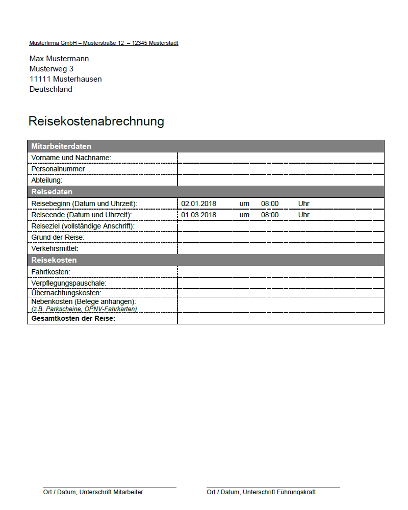 Bestandteile der Reisekostenabrechnung – das muss im Muster enthalten sein