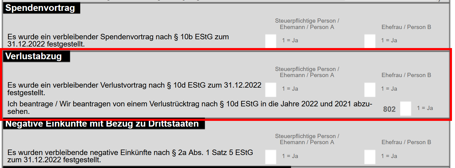 So geben Sie den Verlustrücktrag bzw. Verlustvortrag in der Steuer an