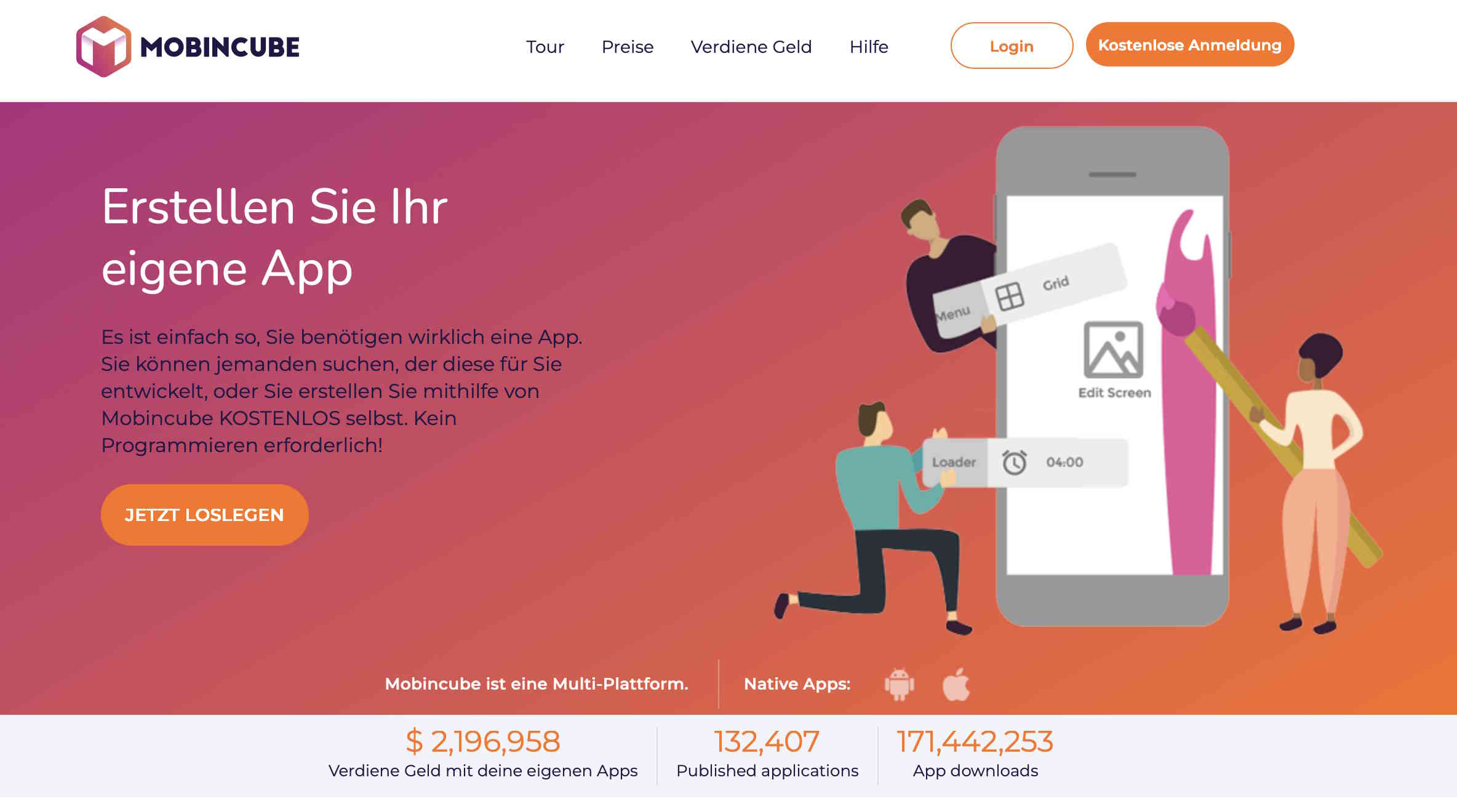 | ✓ Werbenetzwerke können Einnahmen generieren | ✗ Intro des App-Builders in günstigen Plänen kann nicht entfernt werden |