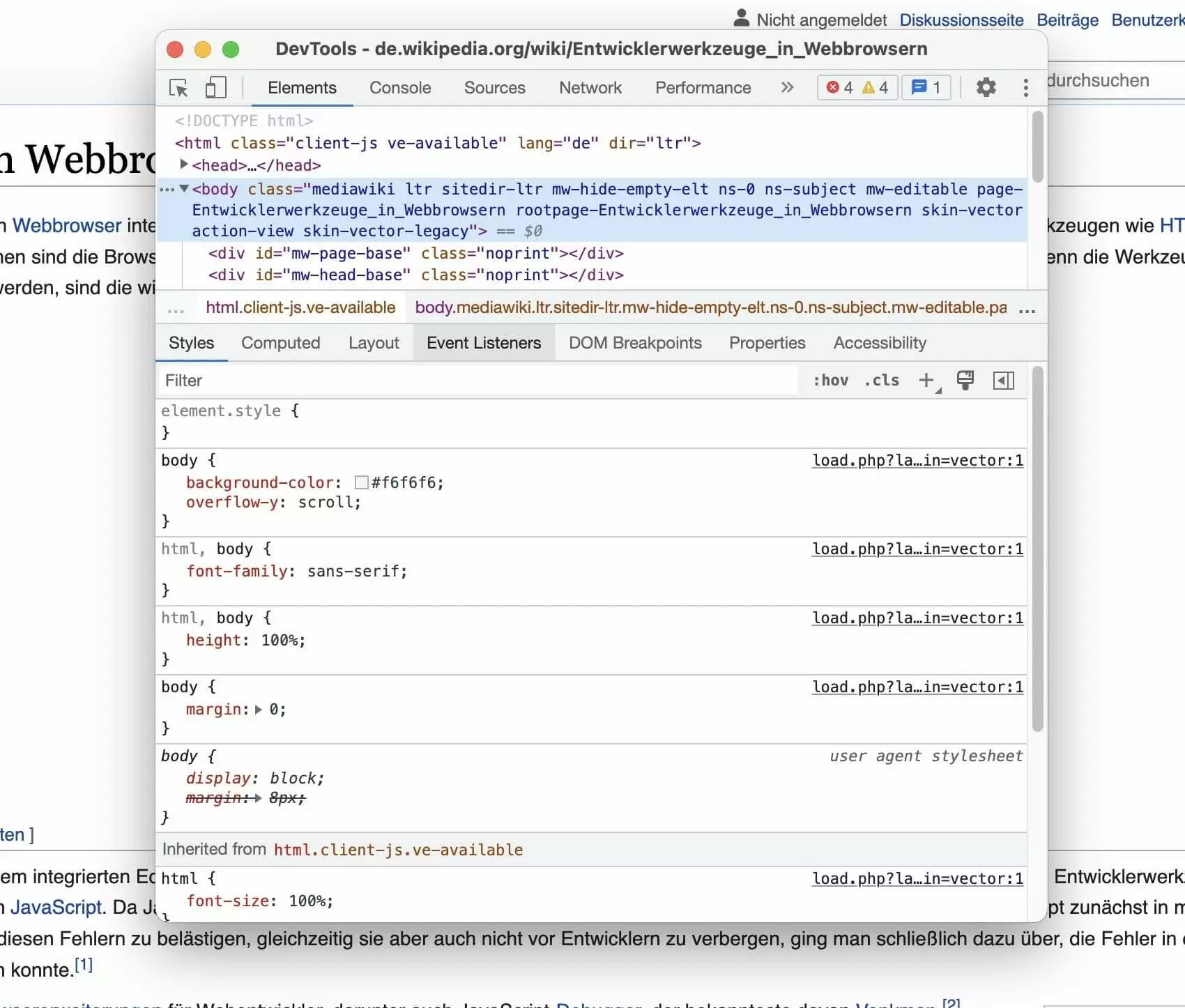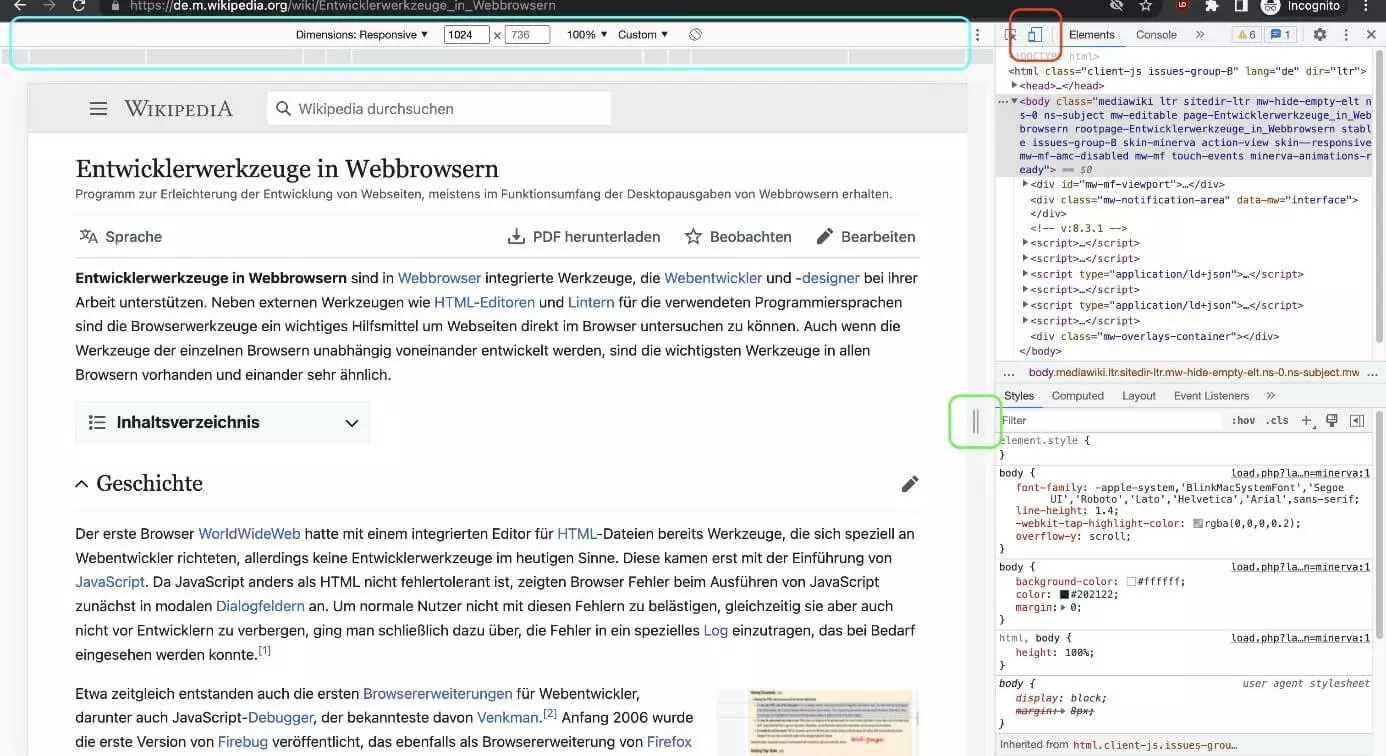 Als Anschauungsbeispiel verwenden wir im gesamten Text die Website https://de.wikipedia.org/wiki/Entwicklerwerkzeuge_in_Webbrowsern.