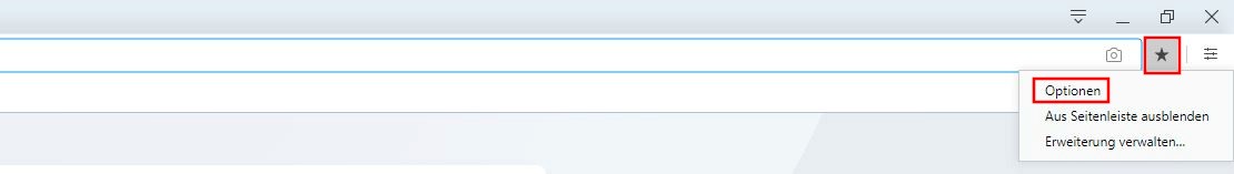 - Infolgedessen öffnet sich automatisch das Menü des Add-ons – generell können Sie es aber jederzeit öffnen, indem Sie per Rechtsklick auf das kleine Sternchen-Icon neben der Adresszeile drücken und dann den Punkt „Optionen“ auswählen.