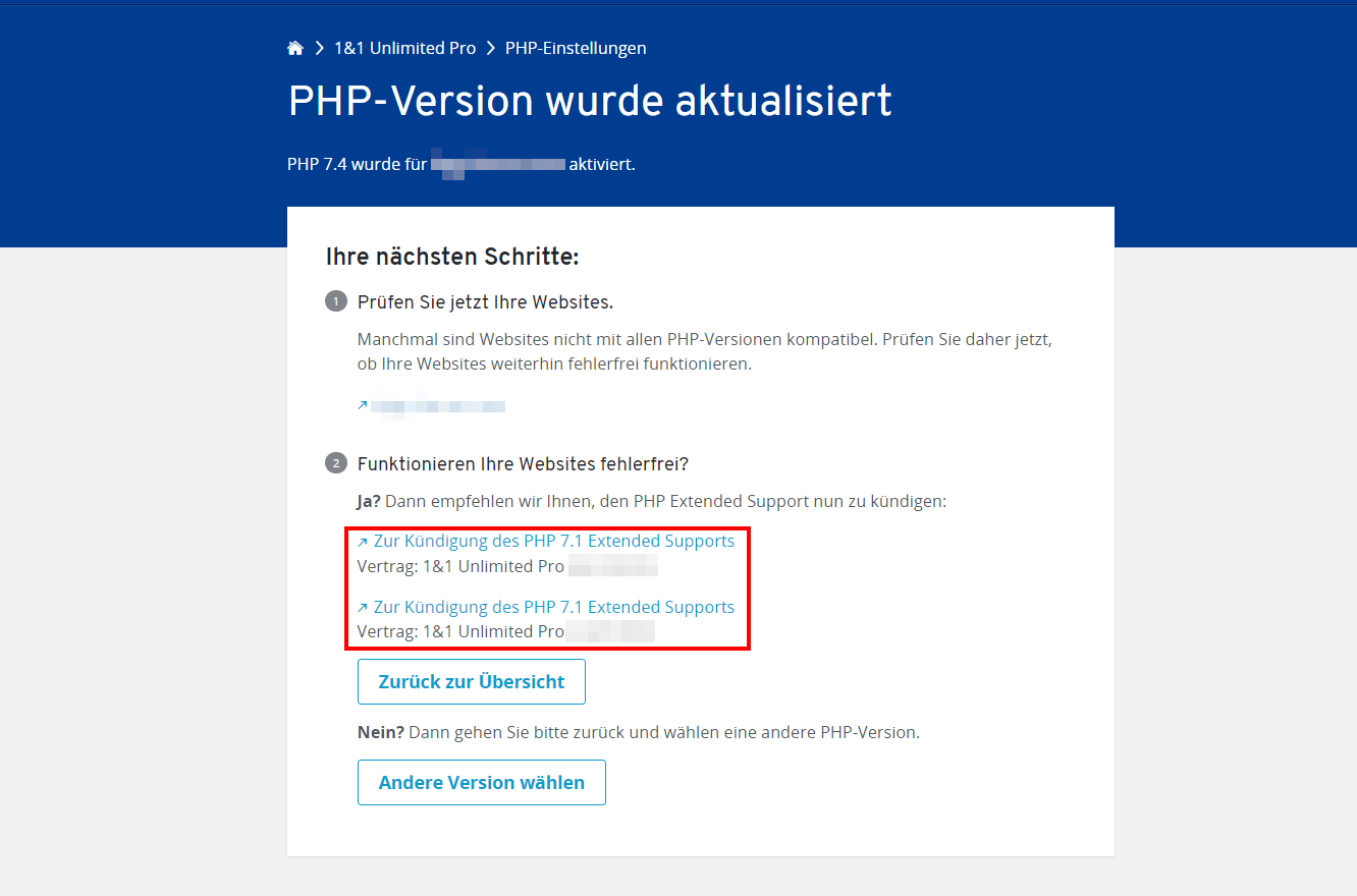Steigen Sie später auf eine aktuelle, offiziell supportete PHP-Version um, können Sie den Extended Support kündigen. Halten Sie sich hierfür einfach an die nachfolgende Anleitung: