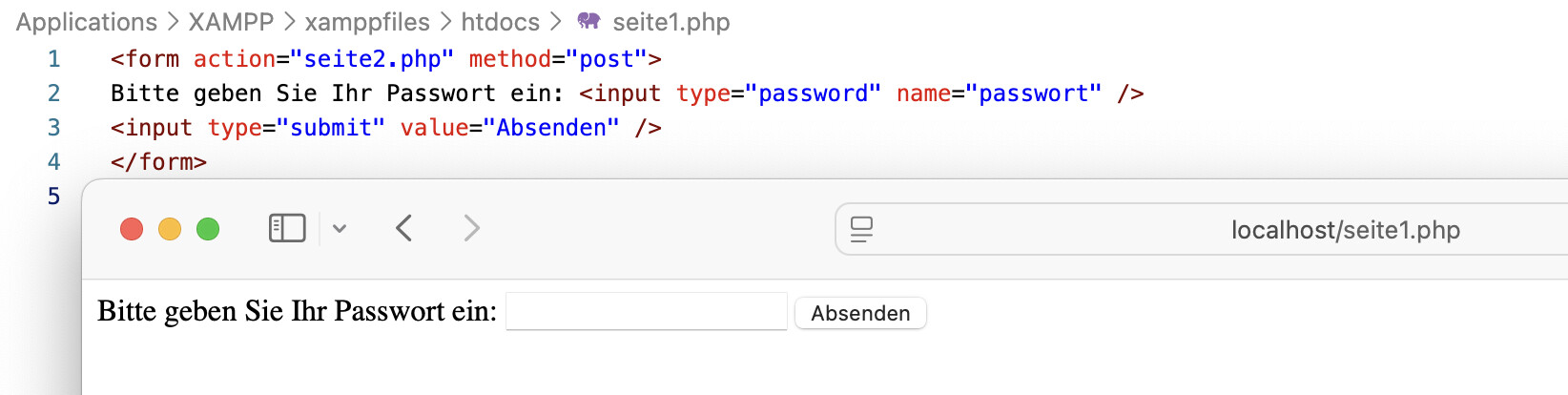 Nicht nur das Speichern von Daten, sondern auch deren Ausgabe kann gefährlich sein. Gibt man Benutzereingaben ungefiltert im Browser aus, kann sogenanntes Cross-Site-Scripting (XSS) auftreten. Dabei wird schädlicher Code im Browser anderer Nutzerinnen und Nutzer ausgeführt. Um das zu verhindern, werden Ausgaben maskiert. In PHP geschieht dies meist mit der Funktion htmlspecialchars() und der Text wird angezeigt, aber nicht als Code interpretiert.