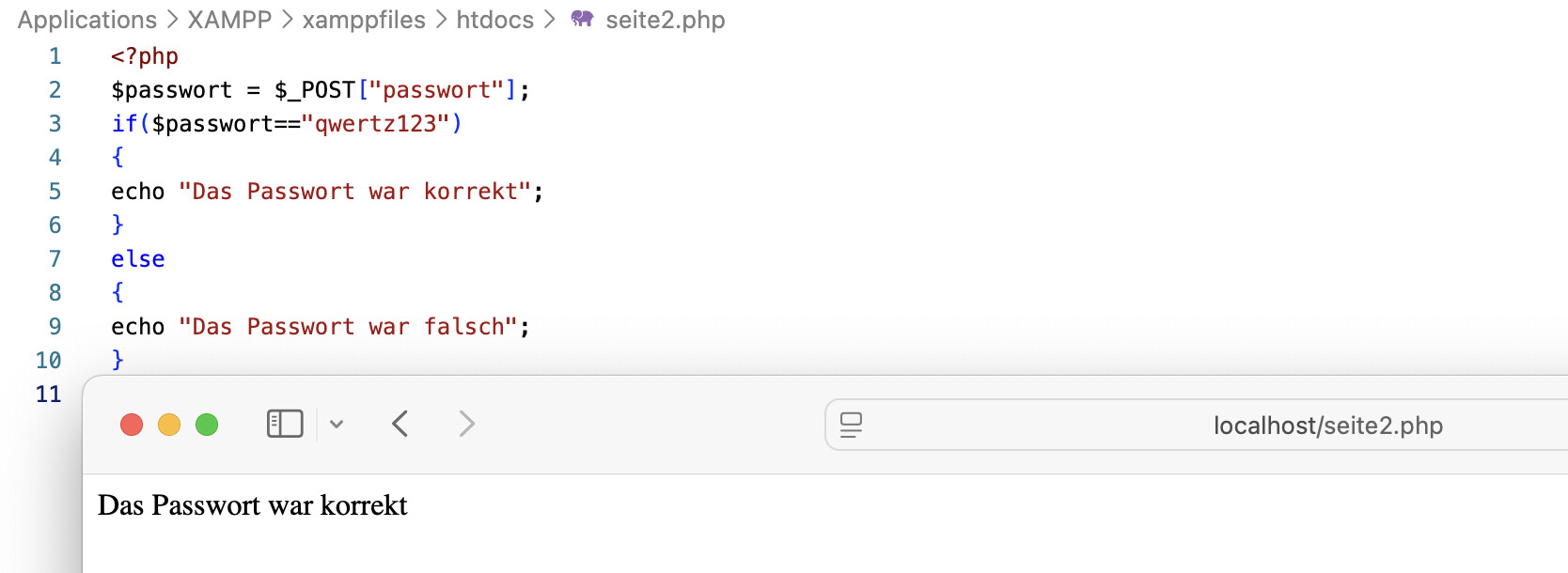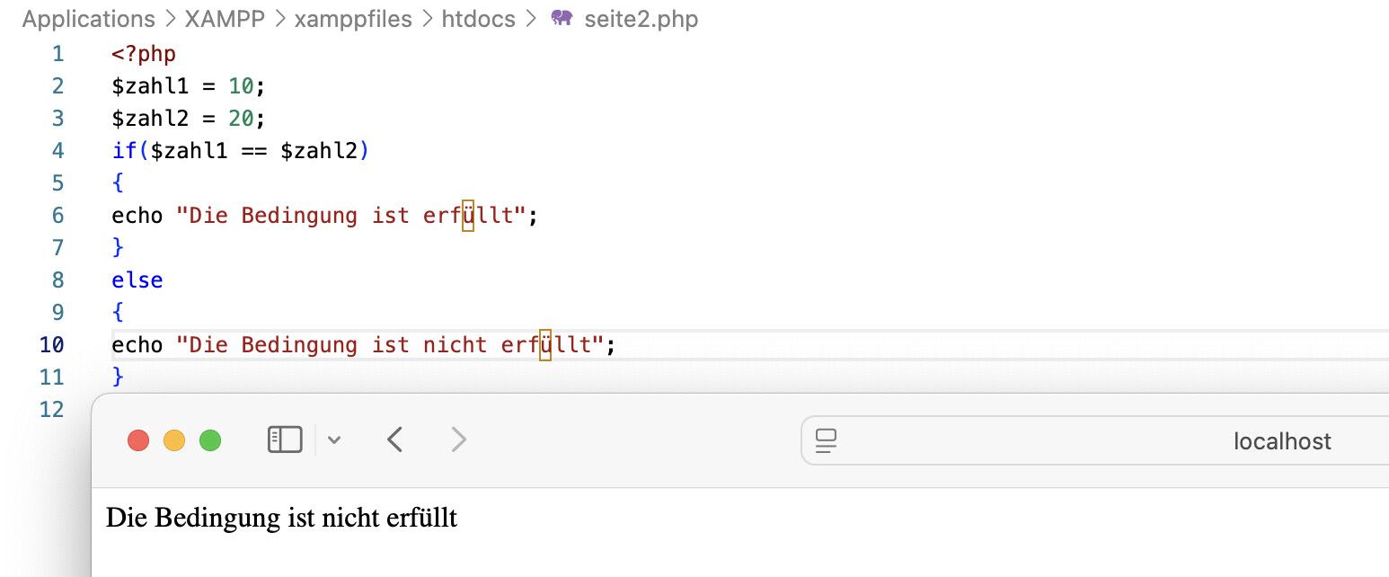 $beispiel1oder$\_beispiel), nie mit einer Ziffer (falsch:$1beispiel). - PHP ist case-sensitive. Die Skriptsprache unterscheidet zwischen Groß- und Kleinschreibung (