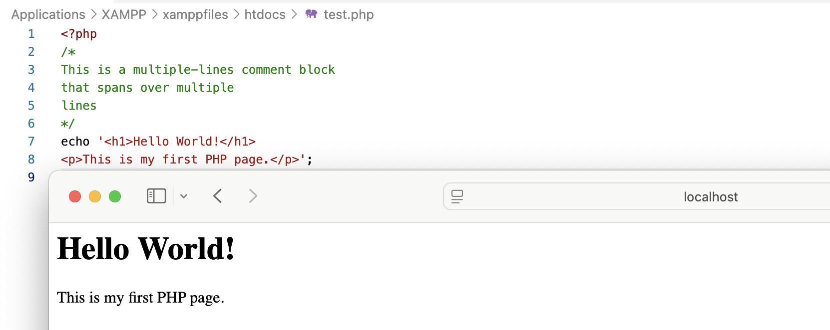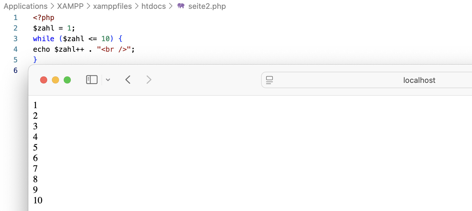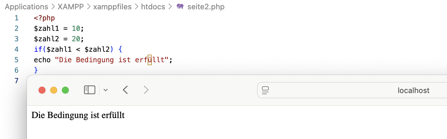 echo Hello World!;phpFehlermeldungen beinhalten in den meisten Fällen Angaben dazu, wo ein Fehler aufgetreten ist, und liefern so wichtigen Input zu dessen Beseitigung. Sie können die Meldungen in jedem Fall im XAMPP-Log unter „C:\xampp\logs\php_error_log“ einsehen.