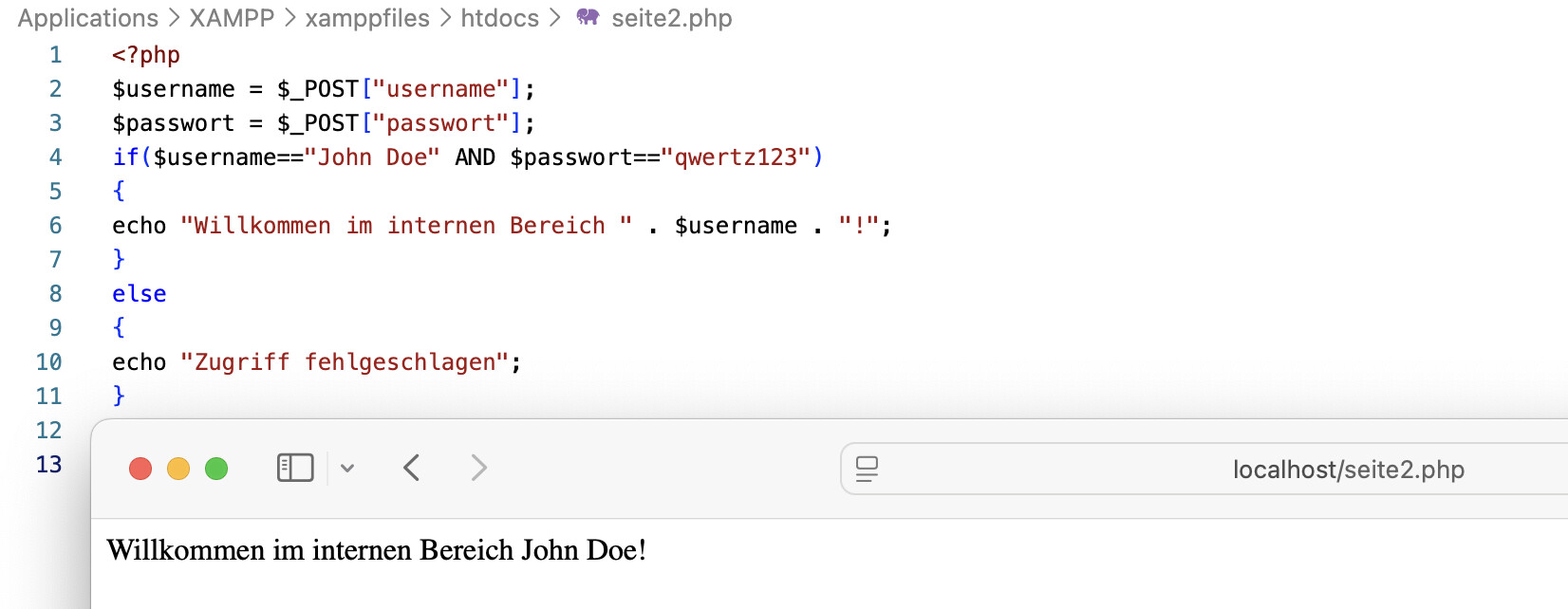 Um Daten mit PHP zu speichern oder auszulesen, benötigt man eine Datenbank. In diesem Beispiel verwenden wir MySQL, das standardmäßig in XAMPP enthalten ist. PHP kann über PDO, also PHP Data Objects, sicher mit der Datenbank kommunizieren. PDO stellt sicher, dass Befehle korrekt ausgeführt werden und dass Benutzereingaben keine Sicherheitslücken verursachen.